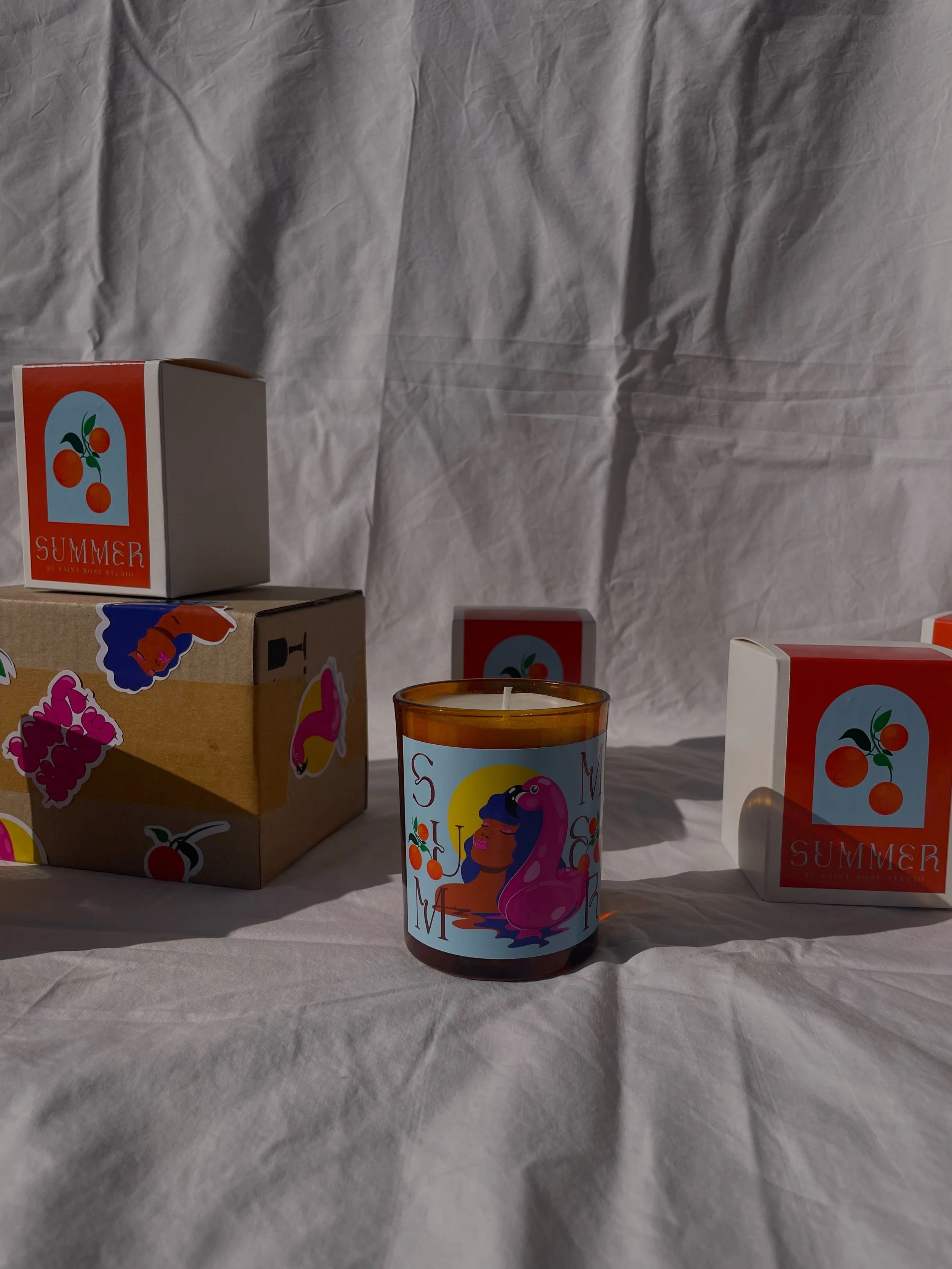 Saint Rose Studio is my illustration studio, where I have had the privilege of working with esteemed clients both at home in South Africa and Globally. Summer is a self initiated project, I wanted to touch base with my clients so I sent out candles as a marketing tool.(Click to enlarge images)